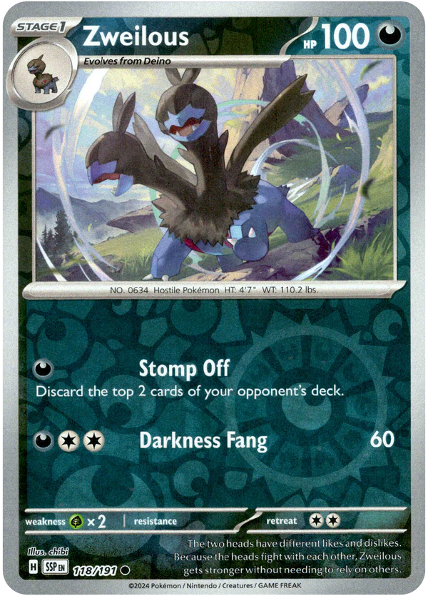 Karta Pokémon – Paldea Evolved – 139/193 – Zweilous (Reverse Holo)