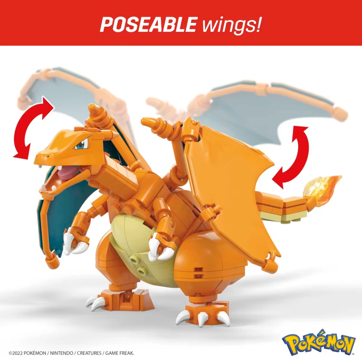 Charizard MEGA Construx – pozowalne skrzydła i efekt ognistego oddechuRuchome skrzydła i efekty ognia