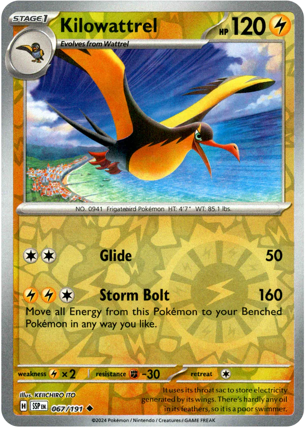 Karta Pokémon – Paldea Evolved – 082/193 – Kilowattrel (Reverse Holo)